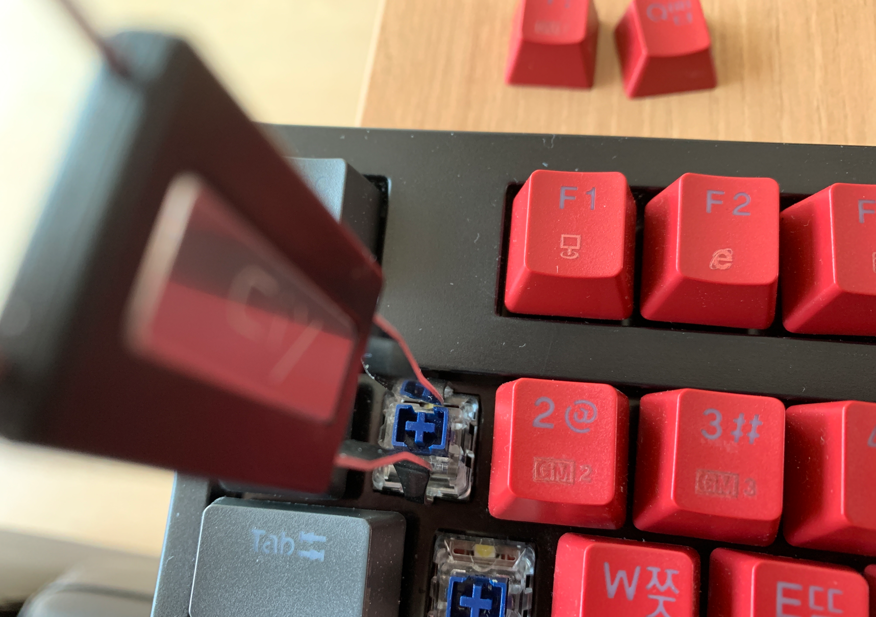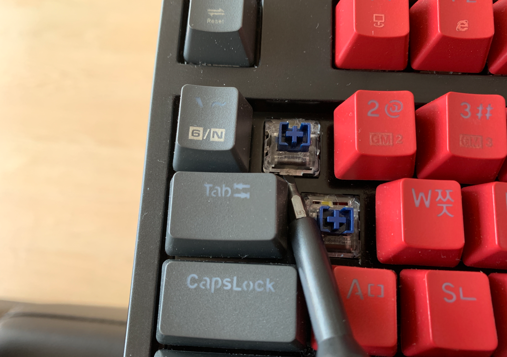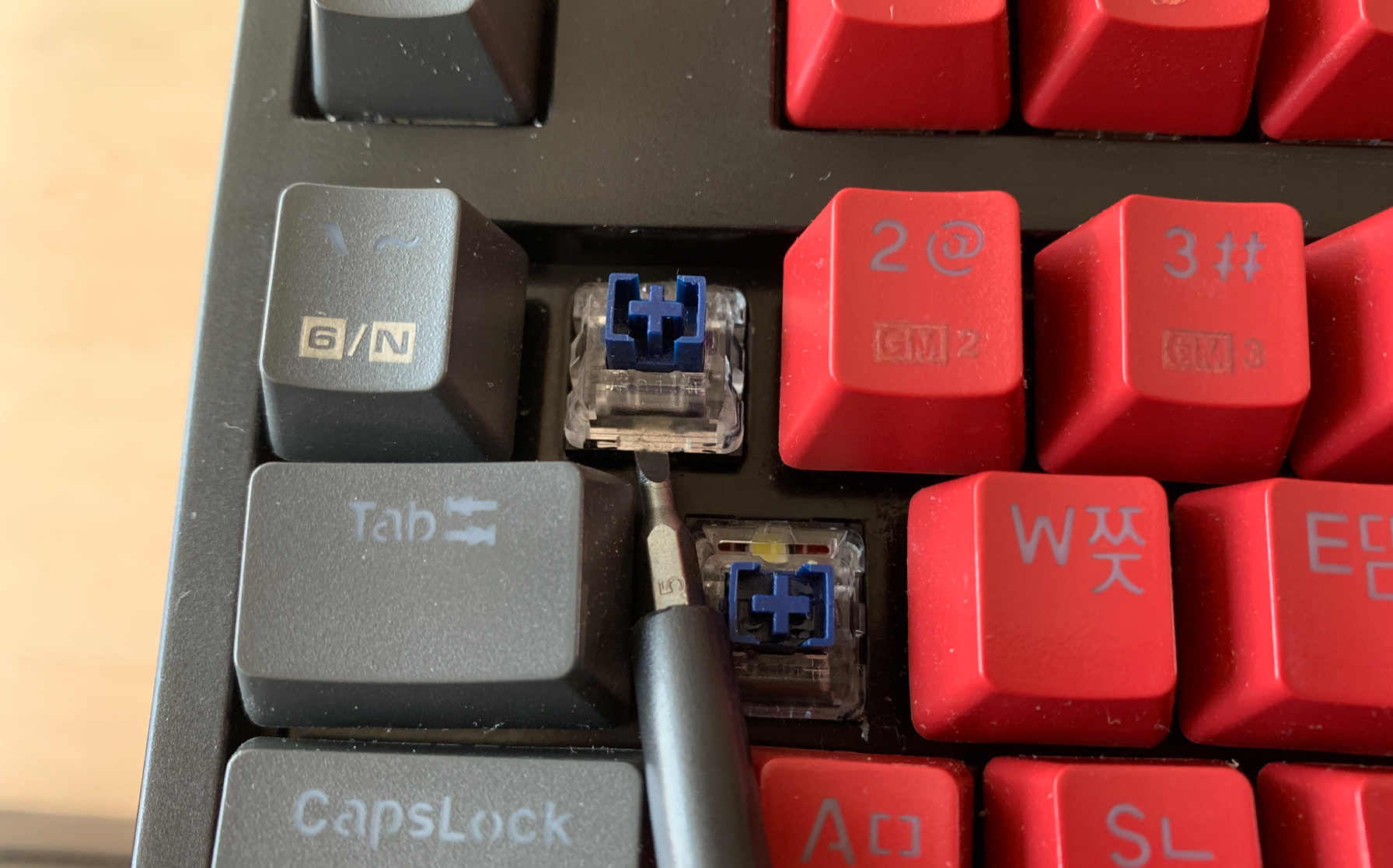 그리고나서 핫스왑 방식의 스위치 분리와 동일하게 스위치풀러를 활용해서 스위치를 가볍게 뽑아내면 된다. 한동안 엄청나게 고민하고 고생하다가 이렇게 해결하니 허무하기까지 했다.