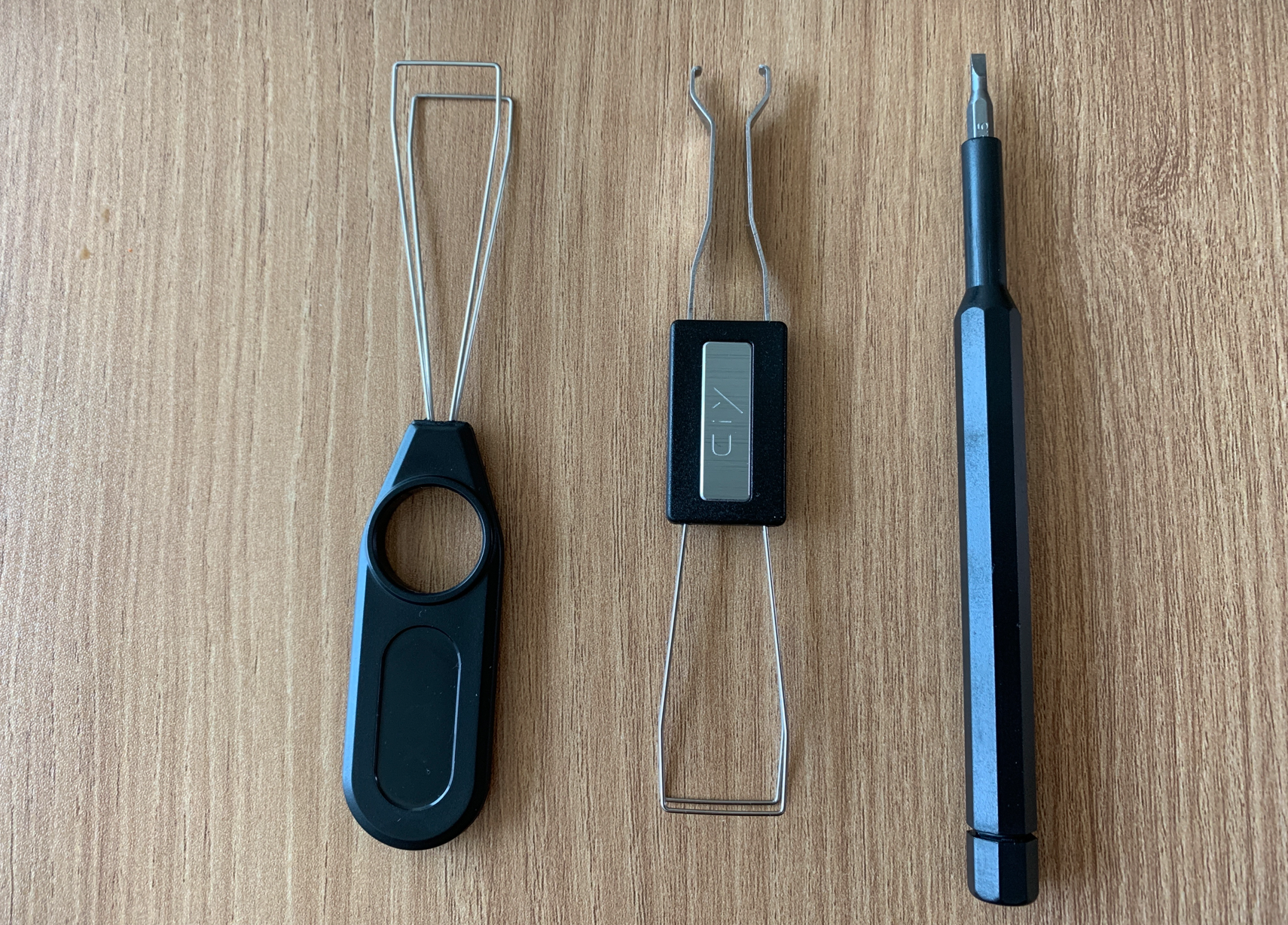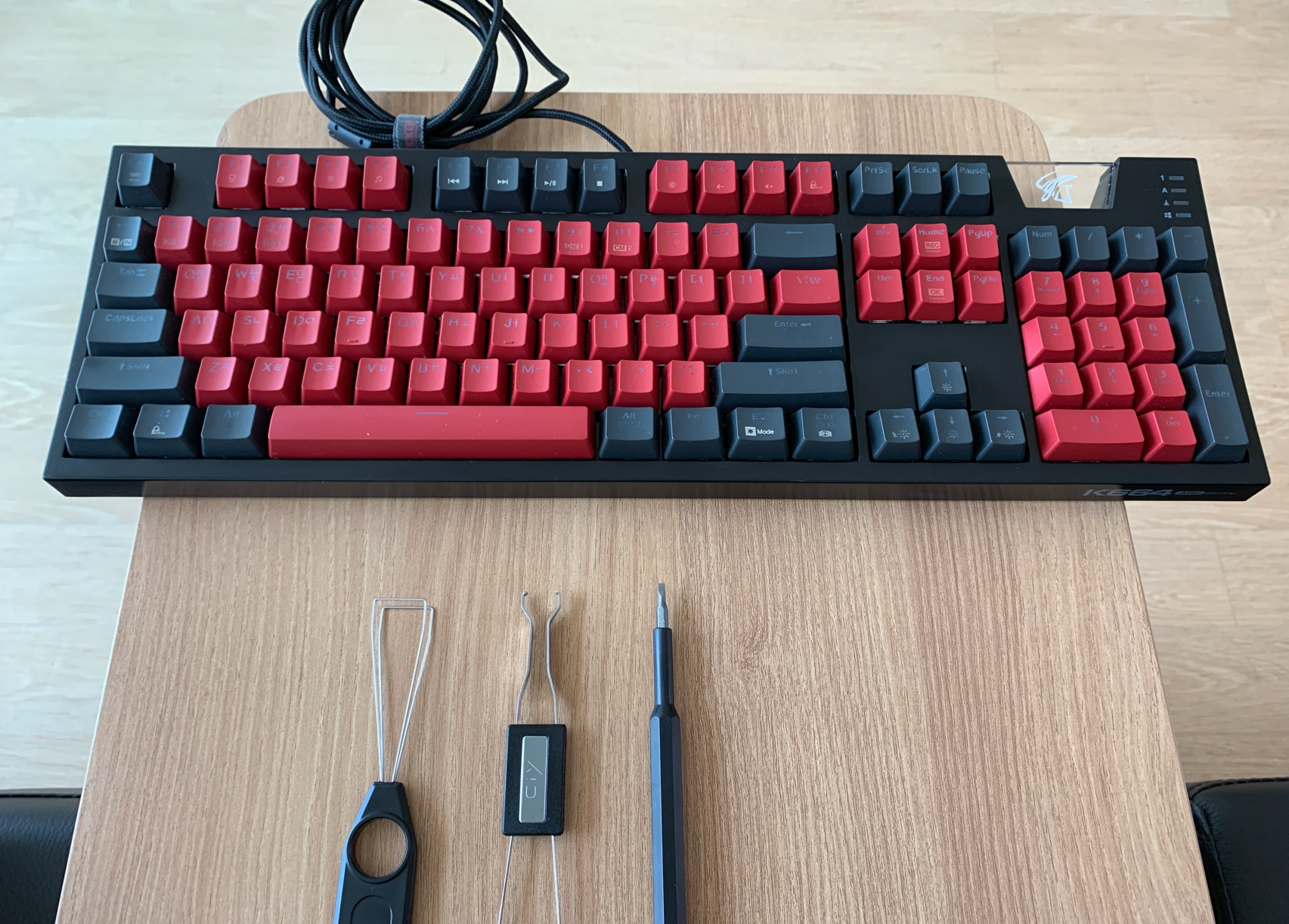 우선 준비물을 소개한다. 보통의 경우라면 키캡풀러, 스위치풀러만 있으면 쉽게 스위치 교체가 가능하겠지만 카일광축의 경우는 추가로 일자드라이버가 필요하다. 유튜브에서 일부 영상을 찾아보면 샤프를 활용하는 경우도 나오는데 개인적인 경험으로는 일자드라이버가 가장 편했다.