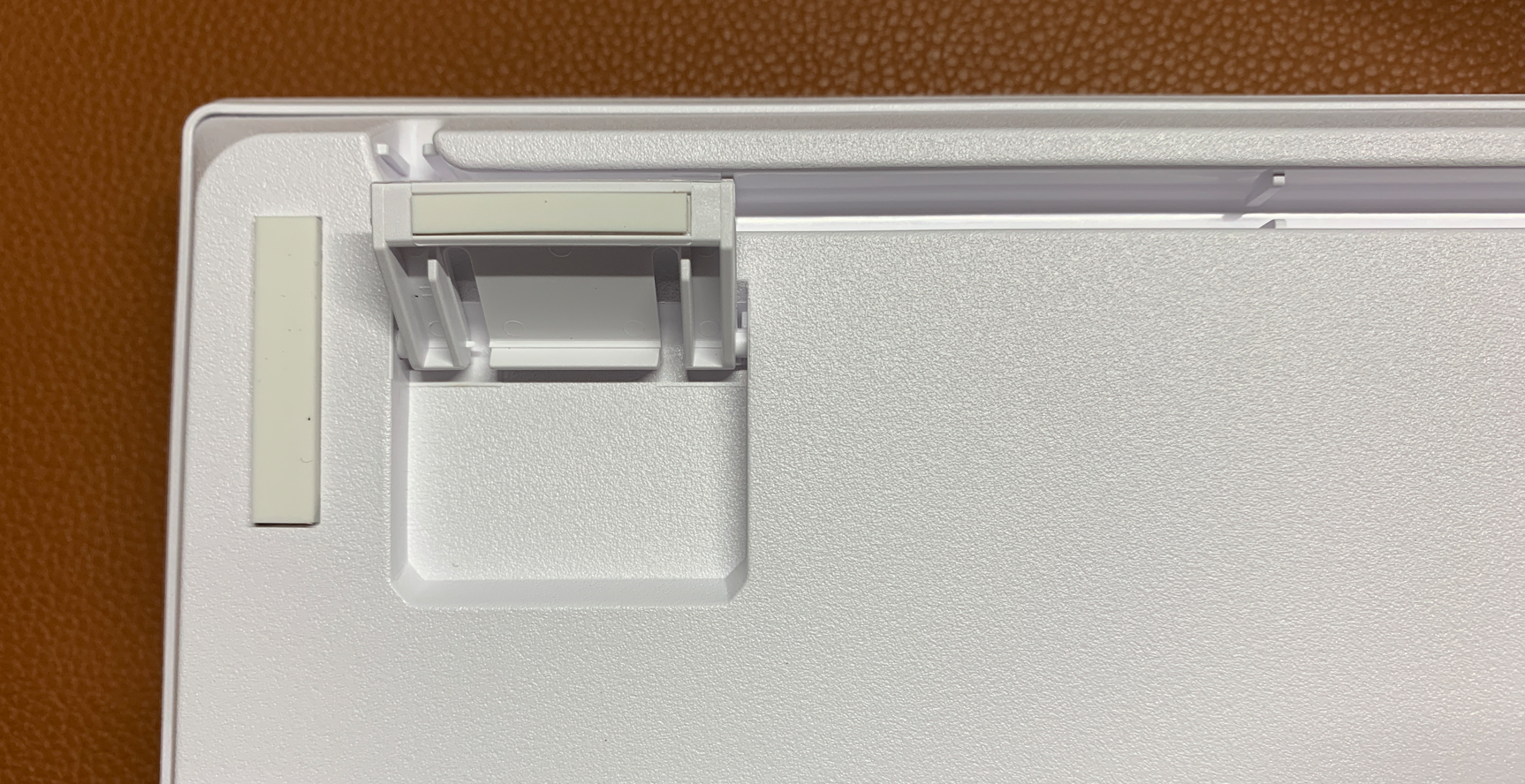 스테빌은 체리식을 채용하고 있는데 알루미늄 보강판 아래로 기판이 보인다. 기보강 흡음재와 하단 흡음재가 기본으로 들어있다.