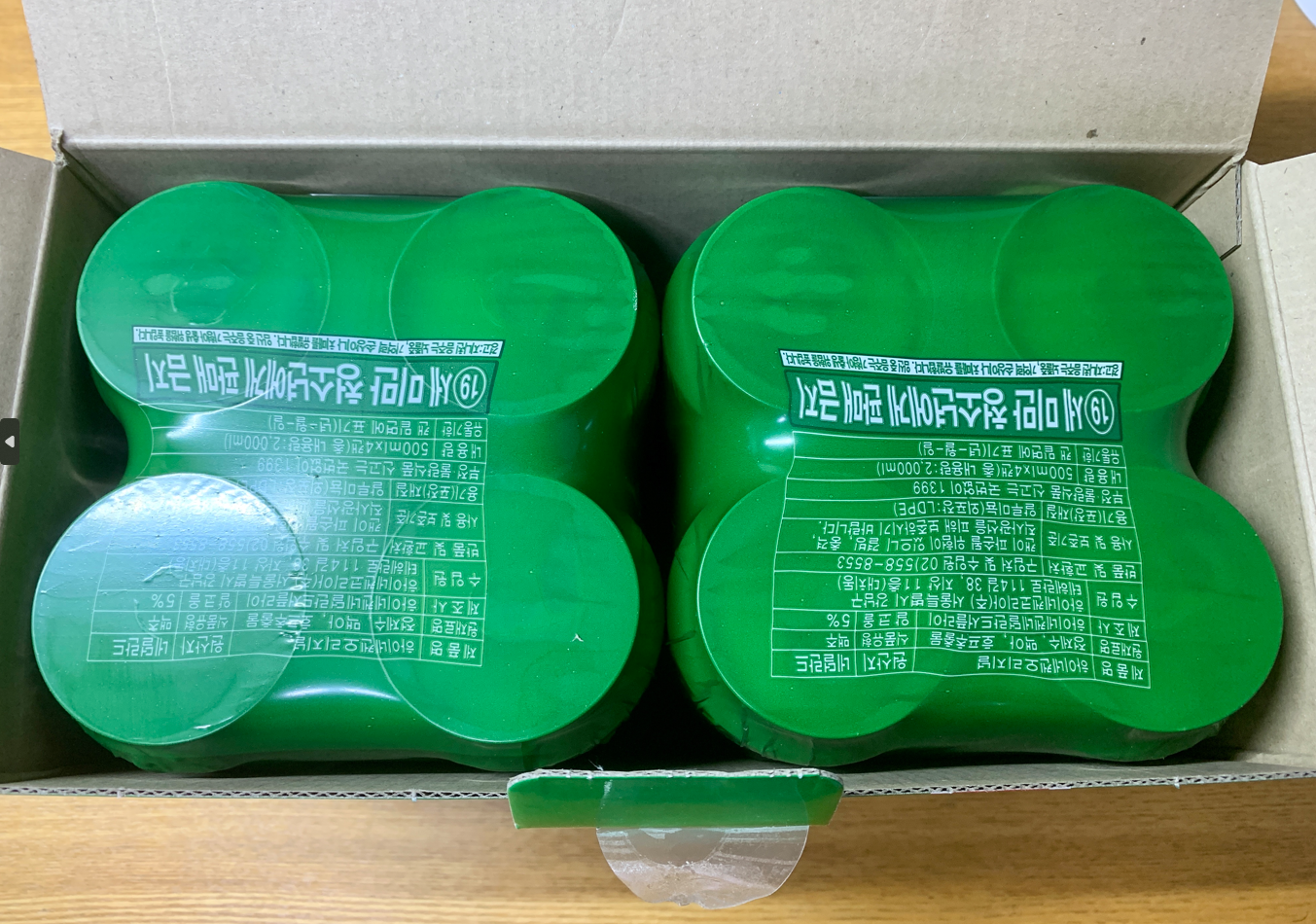 박스를 개봉해보면 4캔씩 비닐 포장으로 2개 묶음으로 구성되어 있습니다.