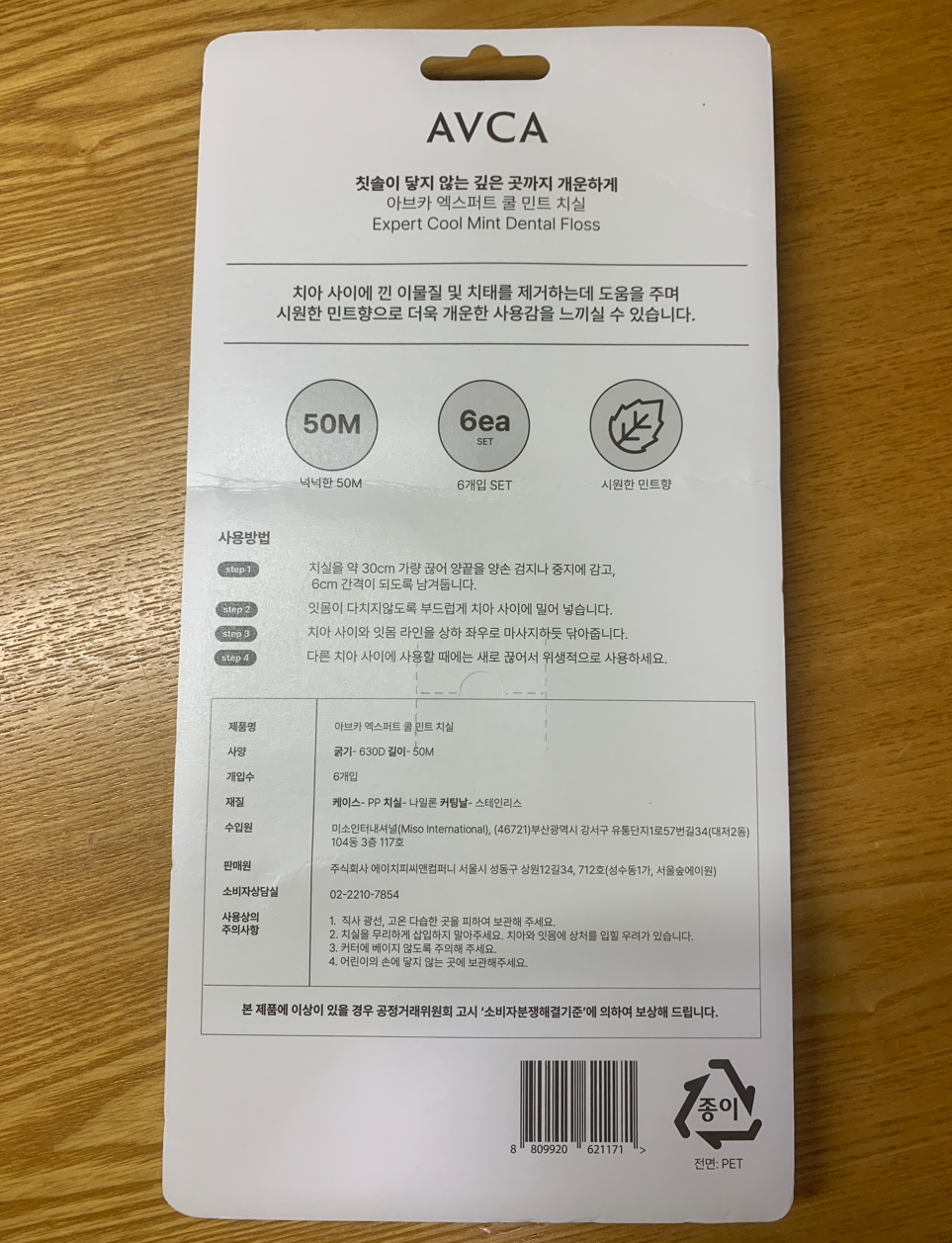 솔직하게 뒷면을 보면 조금은 평범한 디자인이다. 치실이니 디자인은 일단 패스한다.