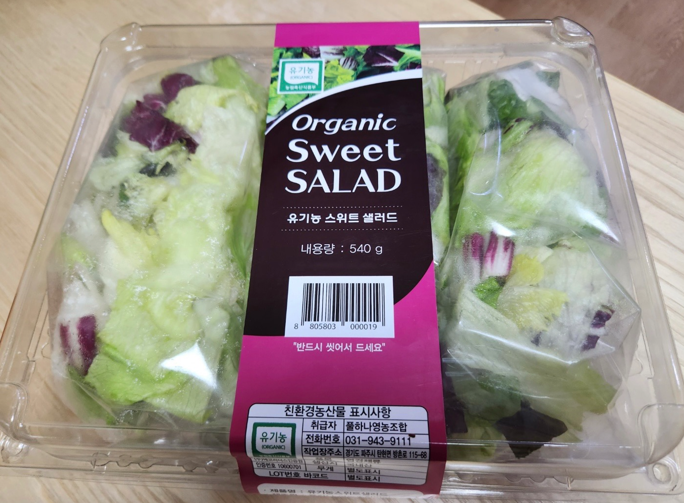 사실 데일리 샐러드의 경우는 그런 문구가 안보여서 그냥 먹었는데 ‘유기농 스위트 샐러드’는 겉으로만 보면 안 씻어도 괜찮을거 같지만 그래도 씻어야 한다기에 열심히 씻어서 먹는다.