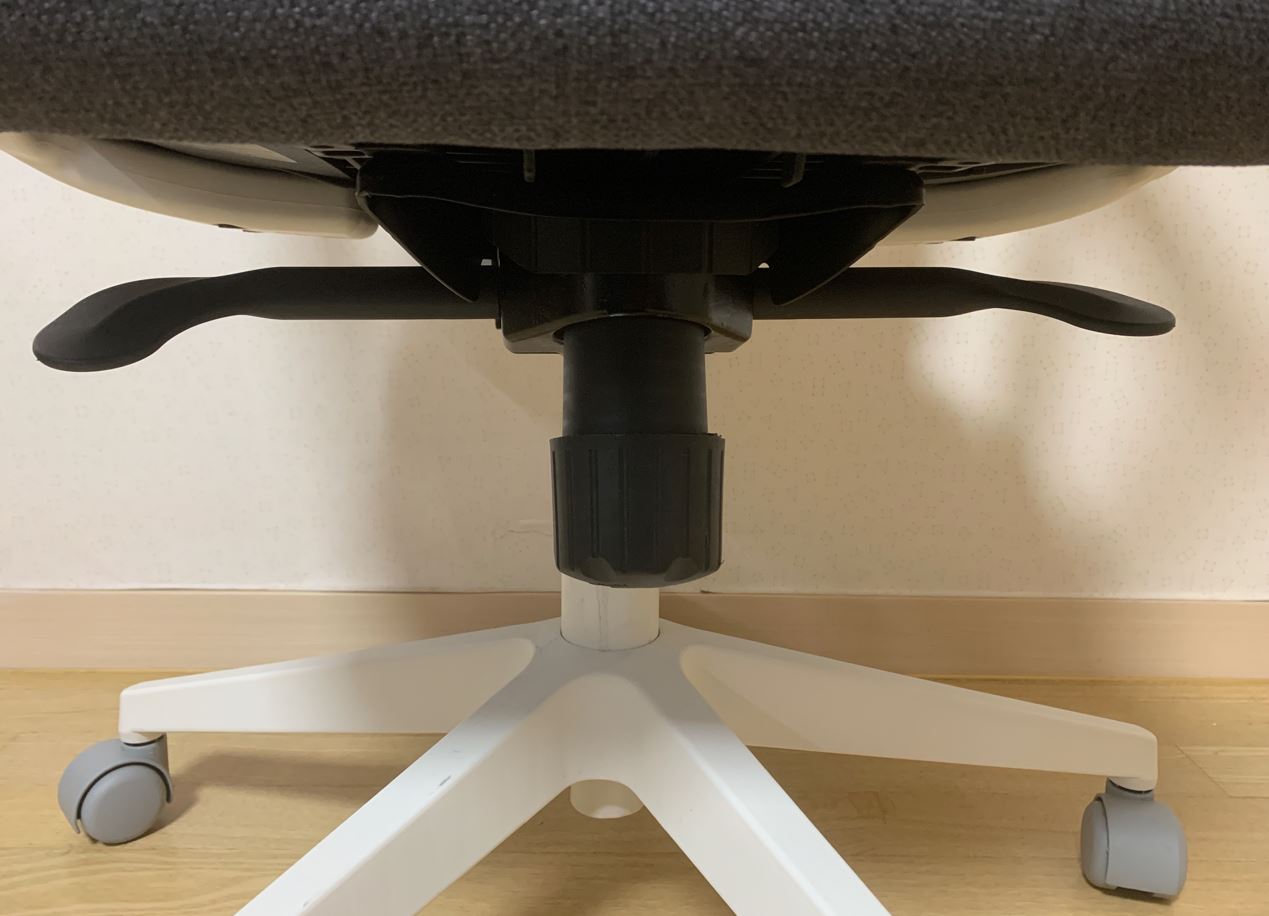아래에는 좌측에 등판 기울기를 3단으로 조절 가능한 레버가 있고, 우측에는 높이를 조절할 수 있는 레버가 있다. 등판 기울기 레버는 구분감이 확실해서 좋다.